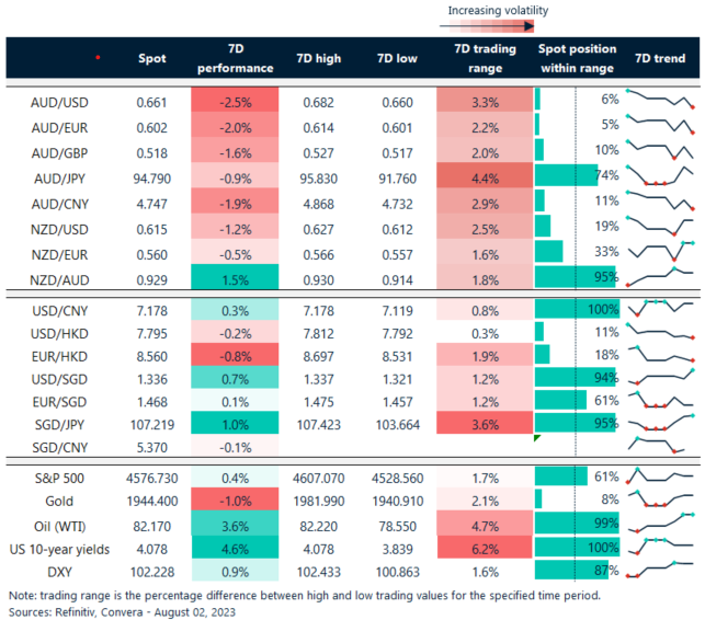 Overnight, the monthly job openings and labor turnover series (JOLTS) remained at a historically high 9.6 million in June, another sign of ongoing strength in the US employment markets. Tonight, ADP job numbers are due, with the non-farm payrolls released on Friday.