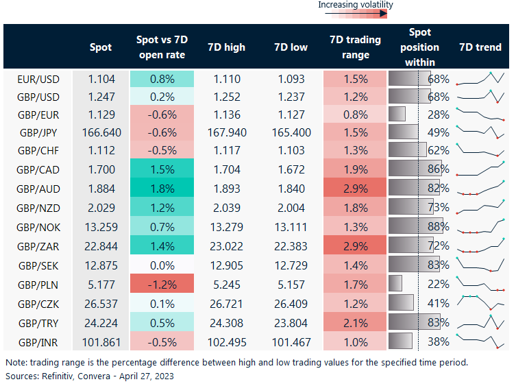 *The FX rates published are provided by Convera’s Market Insights team for research purposes only. The rates have a unique source and may not align to any live exchange rates quoted on other sites. They are not an indication of actual buy/sell rates, or a financial offer.