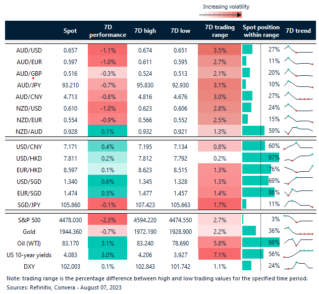Table: seven-day rolling currency trends and trading ranges