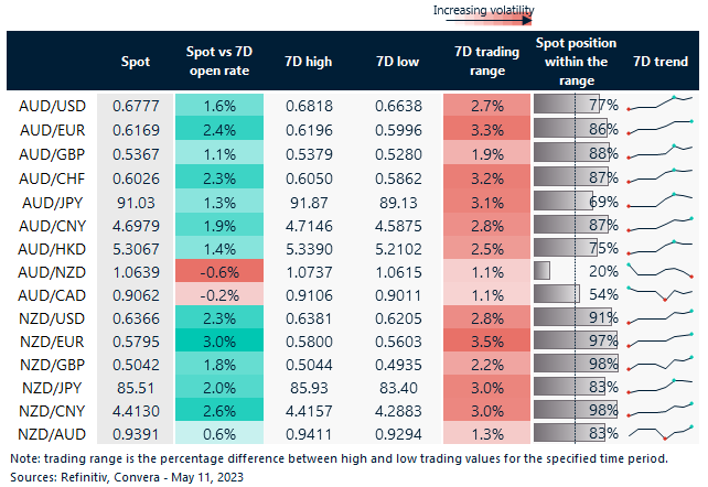 Table: seven-day rolling currency trends and trading ranges