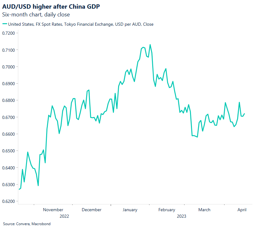 The Australian and New Zealand dollars both climbed overnight after a stronger than expected result from Chinese March-quarter GDP but otherwise it was a quieter night in financial markets.