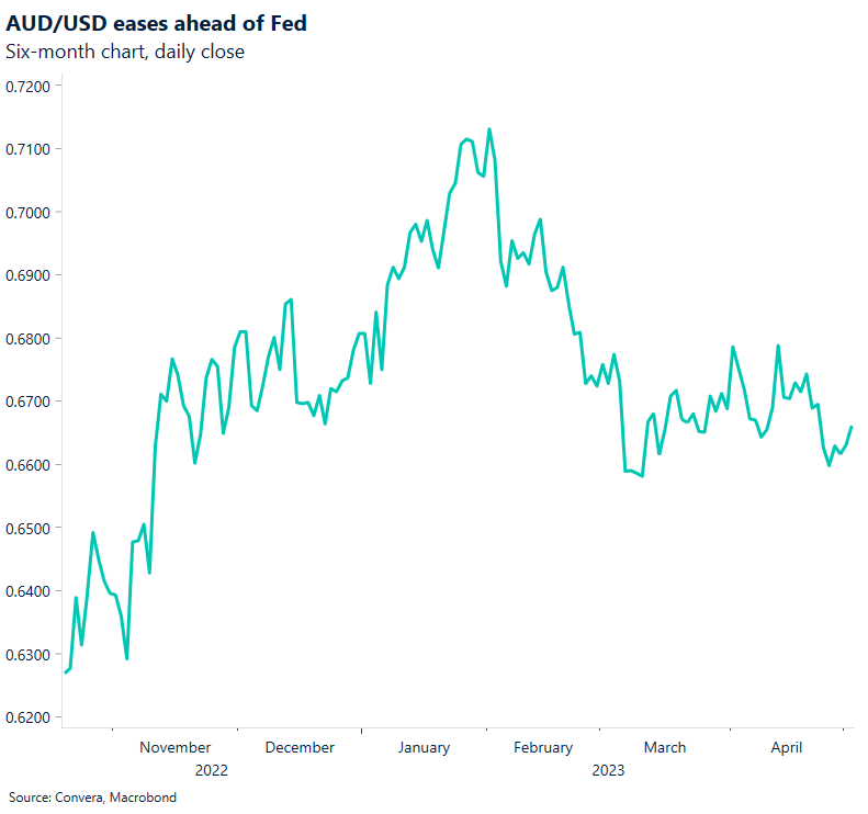 The AUD/USD drifted lower overnight, giving up earlier gains, as US shares fell ahead of tonight’s all-important US Federal Reserve decision.