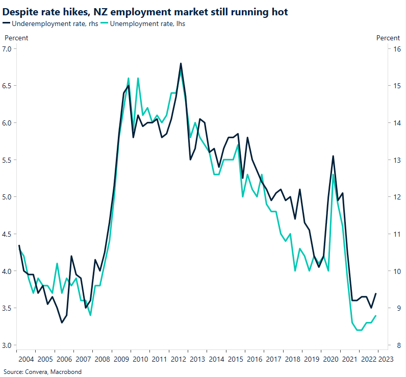 NZ employment remains tight and is one of the major drivers of the Reserve Bank of New Zealand’s move to raise rates to 5.25%.