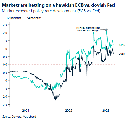 FX markets have recently been driven by diverging rate expectations – the USD index has fallen to 12-month lows as markets look to Fed cuts in the second half of this year. On the other hand, the euro has gained strongly as markets bet on at least three more hikes from the ECB.