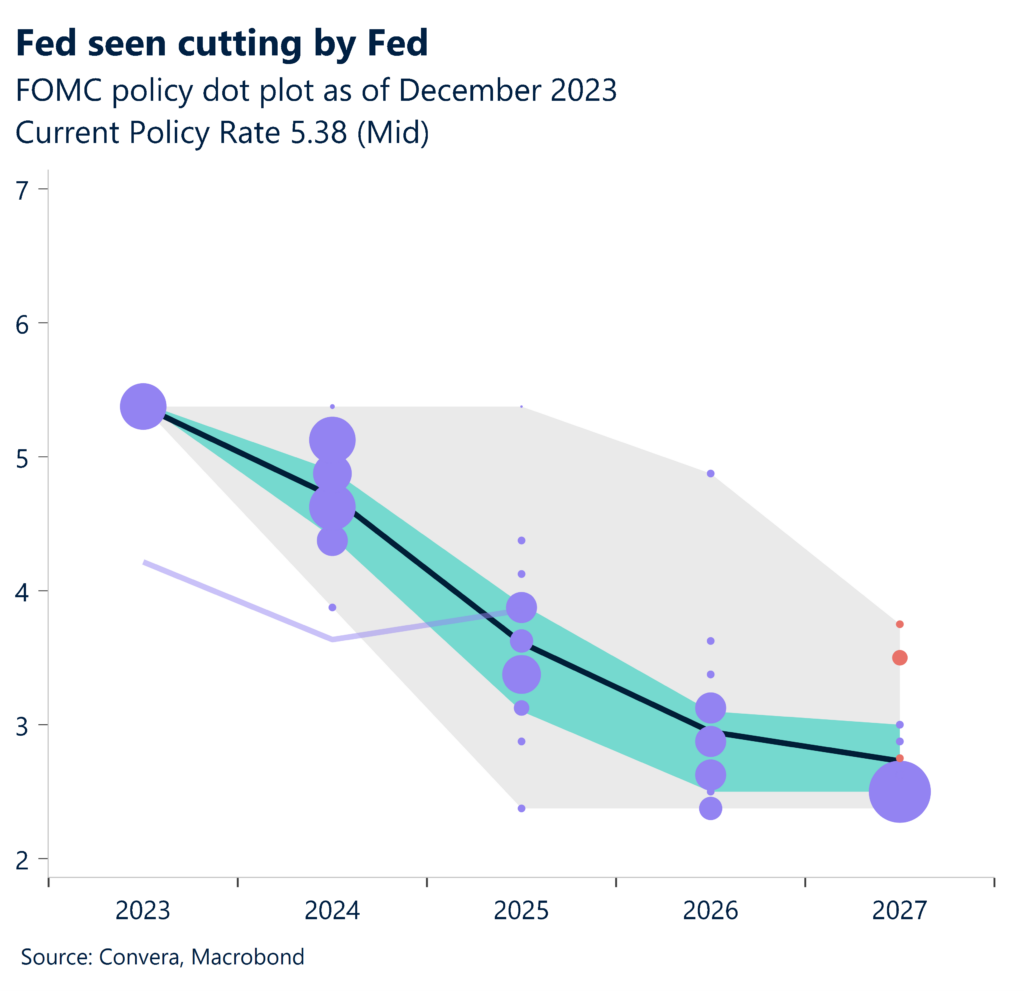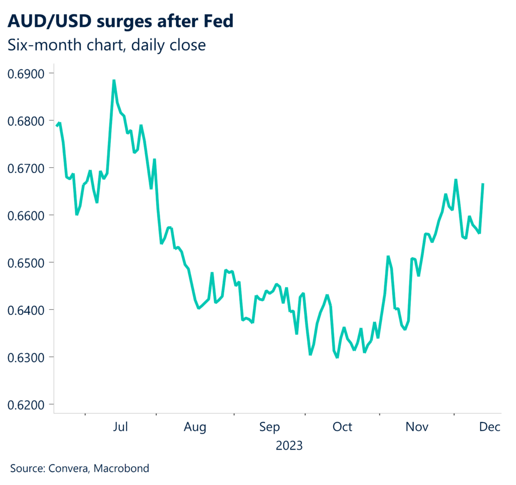 The US dollar was shocked lower overnight after the US Federal Reserve appeared to make a significant shift in its policy stance and opened the door to rate cuts in 2024.