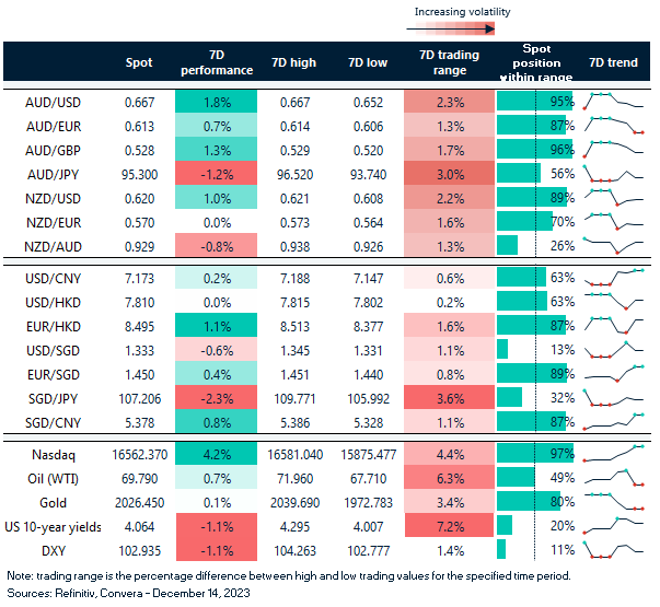 The Daily Market Update will take a break over the holiday period – our final edition is on 15 December 2023. The report will return on 3 January 2024. Our offices will be open as usual but will observe local public holidays. Speak to your account representative for more information.