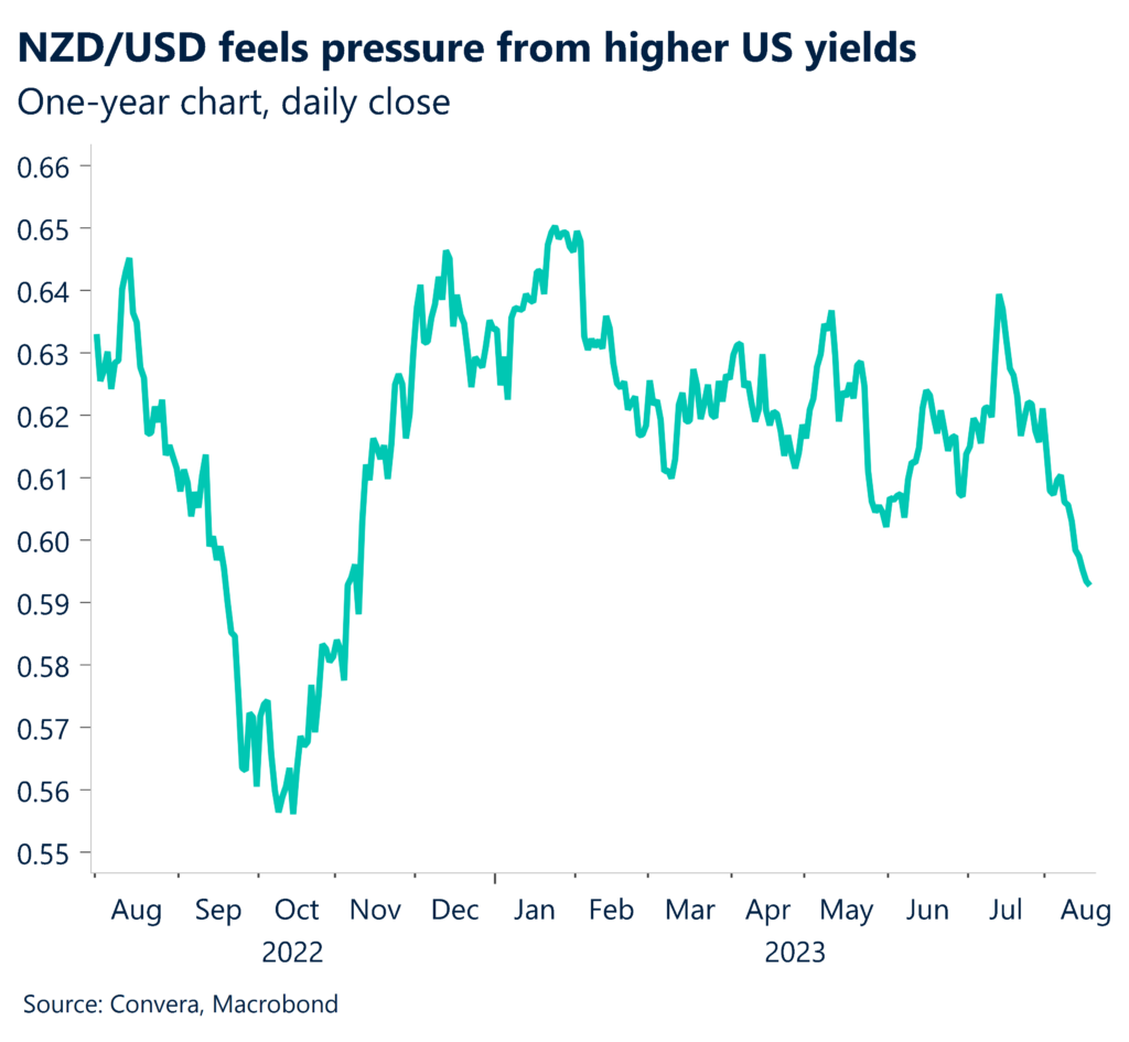The NZD/USD was also broadly steady at recent lows – the kiwi has been historically tied to US interest rates and the recent climb in US bond yields has seen the NZD underperform.