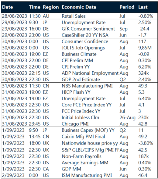 Higher US bond yields continue to dominate markets after Friday night’s major speech from Federal Reserve chair Jerome Powell signaled the risk for US interest rates to remain higher for longer.