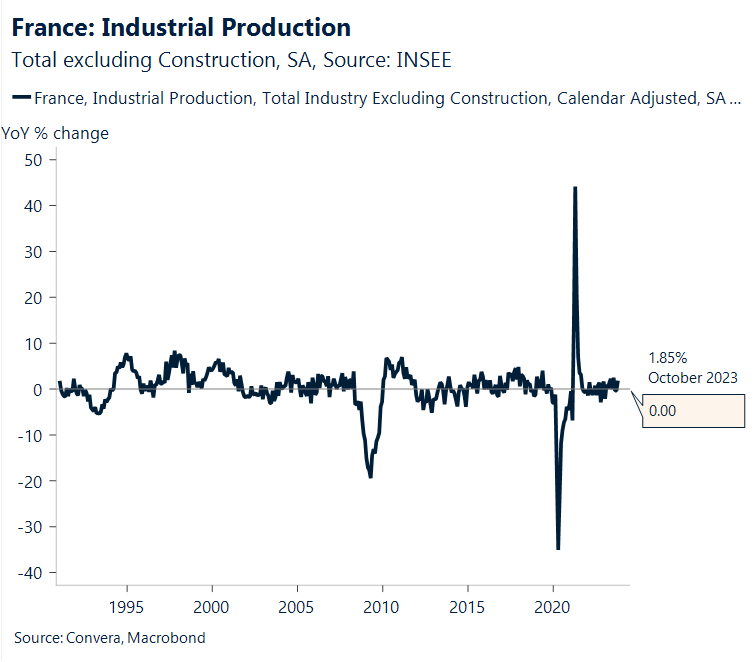 In Europe, whether we look at the PMIs, BdF, or Insee surveys, French manufacturing surveys were very dismal in November.