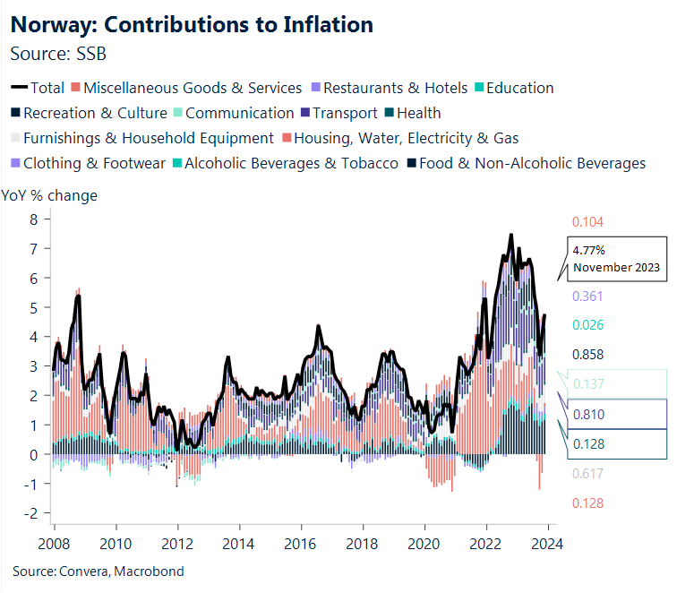 This week, Norwegian CPI inflation is forecast to dip from 4.8% to 4.7%. We also estimate CPI-ATE inflation to decline from 5.8% to 5.5%, which is 0.1 percentage point lower than Norges Bank’s prediction.