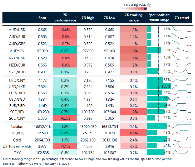 Table: seven-day rolling currency trends and trading ranges