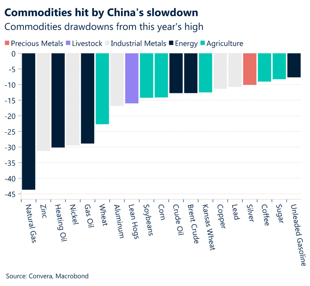 Imports also fell, down 4.5%, but below the 8.0% drop forecast by the markets. The ongoing slowdown in Chinese imports has pressured commodity prices this year.