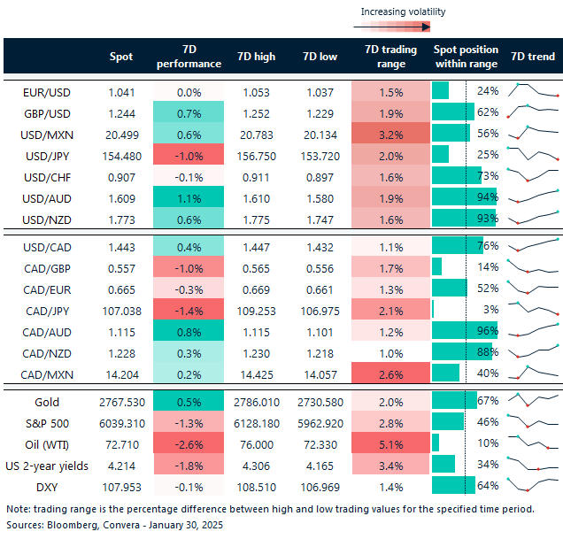 Table: 7-day currency trends and trading ranges
