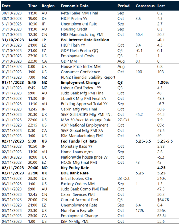 As US bond yields rise, with the US ten-year bond yield at 4.93% overnight, there is less need for the Federal Reserve to raise official interest rates. While other Fed board members have made note of this, Fed chair Jerome Powell is less committal.