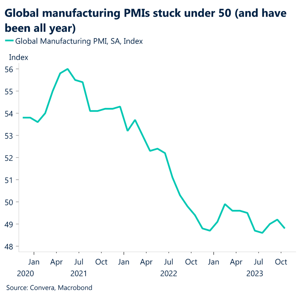 Historically, PMI numbers have a large impact on the AUD and NZD – higher numbers are typically supportive. With the global composite manufacturing PMI languishing all year – the Aussie and kiwi have struggled too.