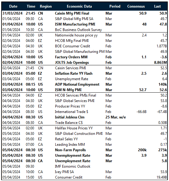 Earlier this week USD/CAD tested a 4-month high, nudging at the barrier of $1.3600, driven by an overwhelmingly robust US economic data, namely strong US manufacturing PMI data, while Canadian indicators continue to lag. As, the US ISM Manufacturing index exceeded 50 in March for the first time since October 2022, domestically, Canada’s S&P Manufacturing PMI remained relatively stable in March, marking the eleventh consecutive month of contraction in sector activity.