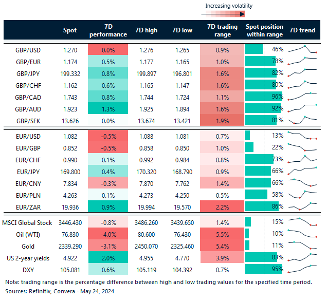 Table: 7-day currency trends and trading ranges