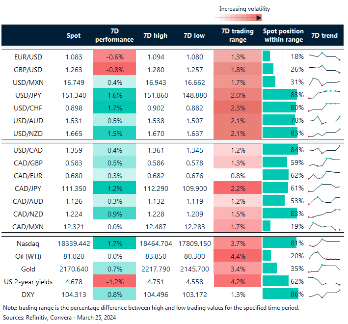 The US dollar has been supported by central banks other than the Fed preparing markets for incoming rate cuts this year. The Greenback rose for the second consecutive week and has been able to appreciate against every G10 currency. Going into this week, the data dependence of central banks and the ambiguity of the future policy easing path are making the macro data invaluable in gauging where markets are headed. However, while a lot of economic data is scheduled to be released this week, most of the prints lack the ability to move markets. The only potential catalyst will be the PCE report (Fed’s preferred inflation measure) on Friday.