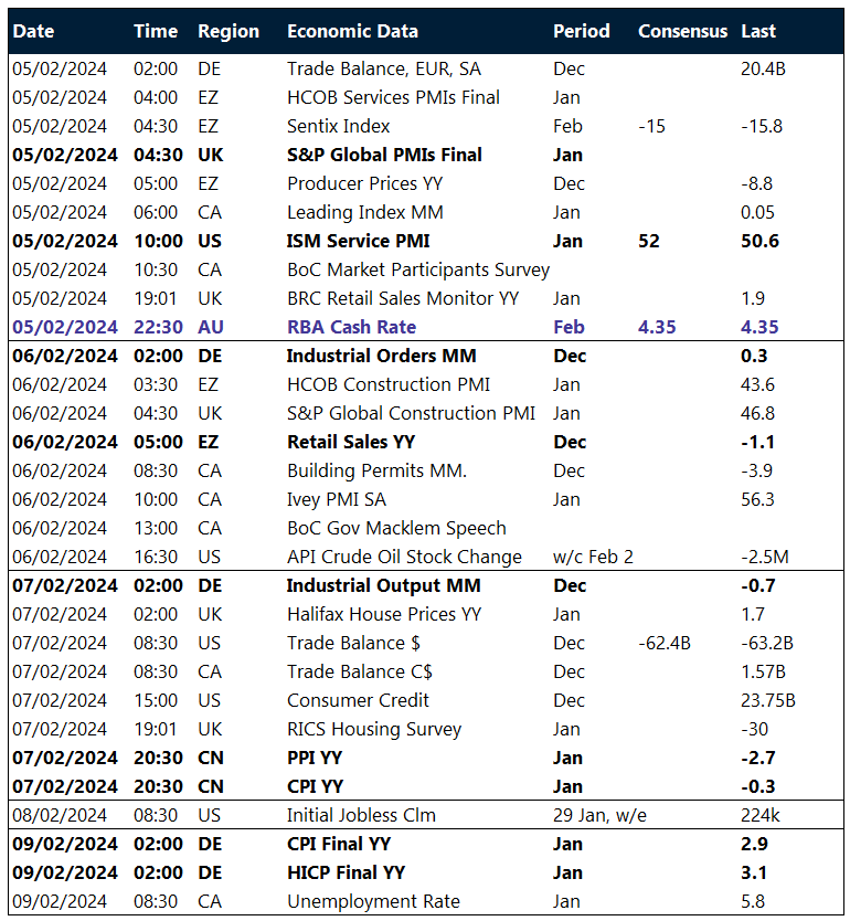Money markets are now only pricing a 15% chance of a Fed rate cut in March compared with a 40% chance last week following a huge upside surprise in the latest US non-farm payrolls and the biggest rise in services sector activity in four months. Consequently, soft landing and recession worries in the US continue to abate, and instead we’re seeing more market participants calling for a no landing or even a re-acceleration in the US this year. Such a scenario will further call into question both the timing and amount of policy easing by the Fed. As we’ve witnessed via the hawkish repricing in Fed rate expectations over the past week, less Fed easing is likely to favour a stronger US dollar.