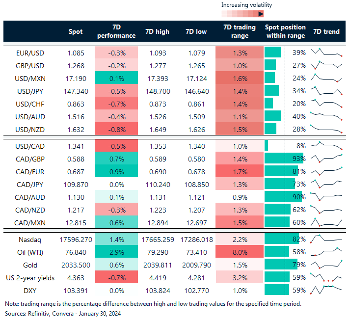 Table: 7-day currency trends and trading ranges