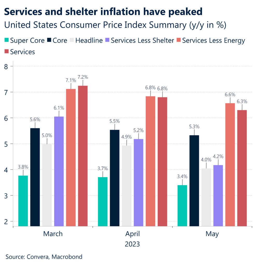US headline annual inflation fell by more than expected, dropping from 4.9% in April to 4.0% in May. The market had forecast a drop to 4.2%.