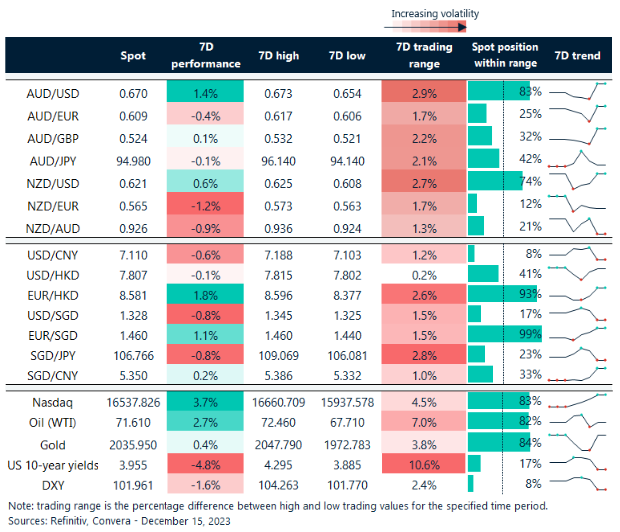 The Daily Market Update will take a break over the holiday period – our final edition is on 15 December 2023. The report will return on 3 January 2024. Our offices will be open as usual but will observe local public holidays. Speak to your account representative for more information.