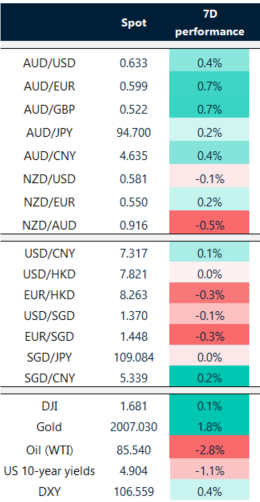 Table: seven-day rolling currency trends and trading ranges (apologies, full table not available today)