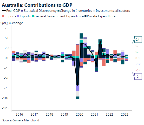 Our estimate of GDP growth increased little from 0.2% in Q3 (1.5% y-o-y from 2.1%), rising by 0.3% q-o-q sequentially in Q4. We believe that in Q4, both consumer expenditures and overall private demand were essentially unchanged.