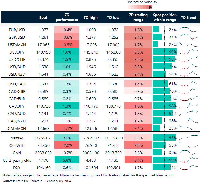 Table: 7-day currency trends and trading ranges