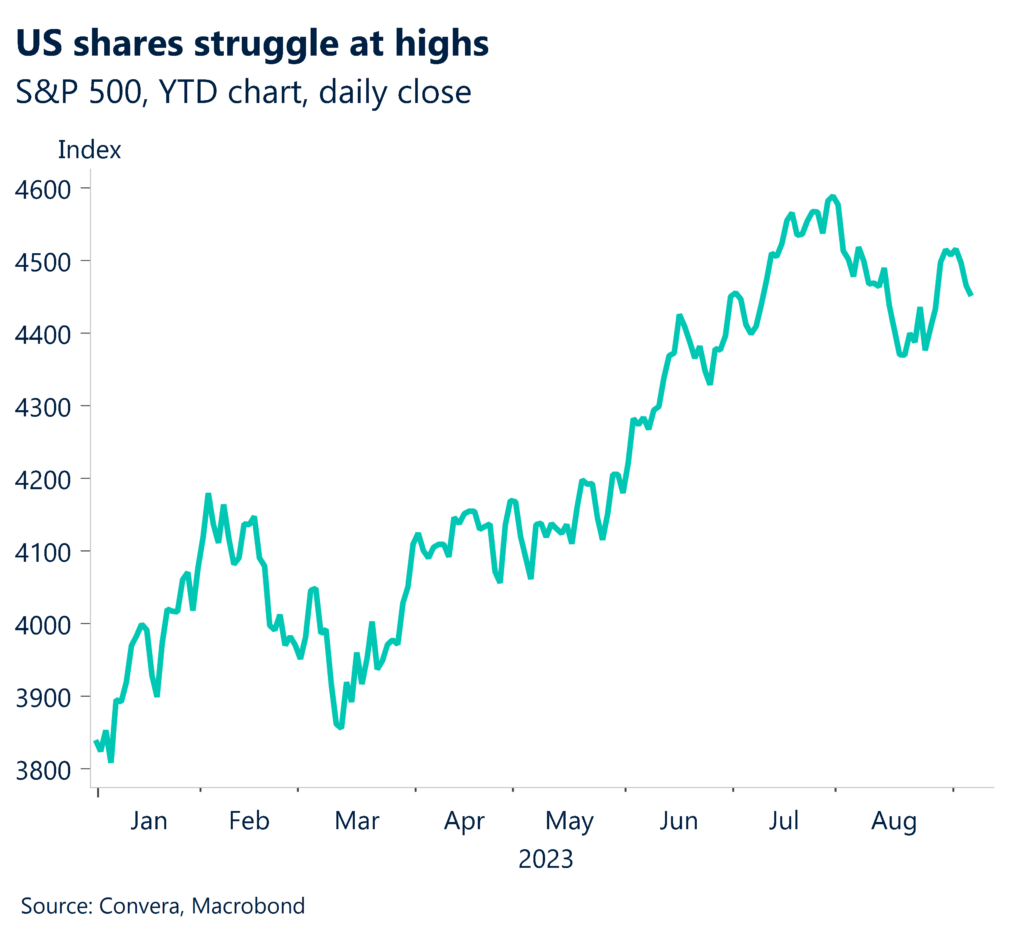 US shares, which have been broadly pressured since mid-July, were weaker again overnight on the Fed hike worries with the S&P500 down 0.3% and the Nasdaq dropping 0.7%.