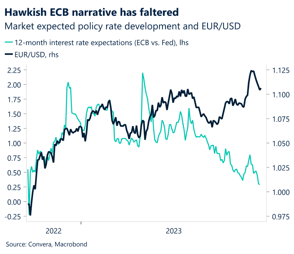 Like the Fed, markets believe the ECB is nearing an end to its rate hiking cycle, with growth across the Eurozone flagging. Germany, for example, fell into a technical recession in the March quarter.
