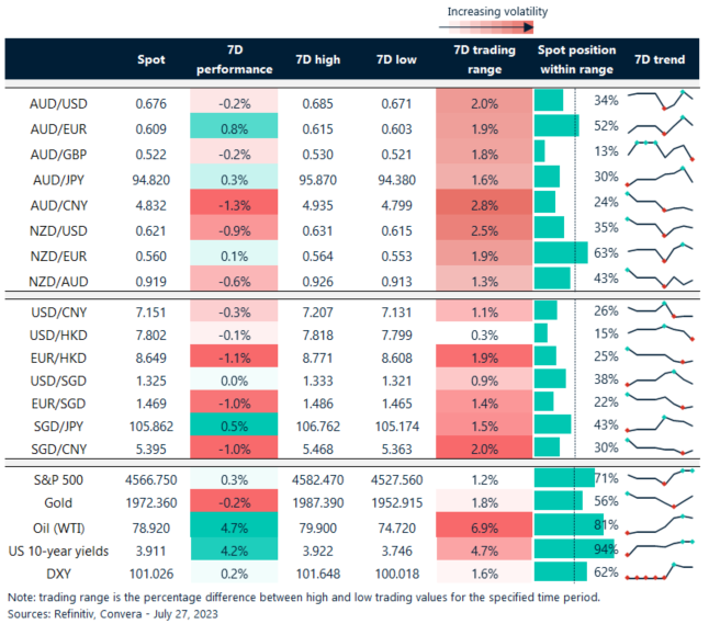 Table: seven-day rolling currency trends and trading ranges