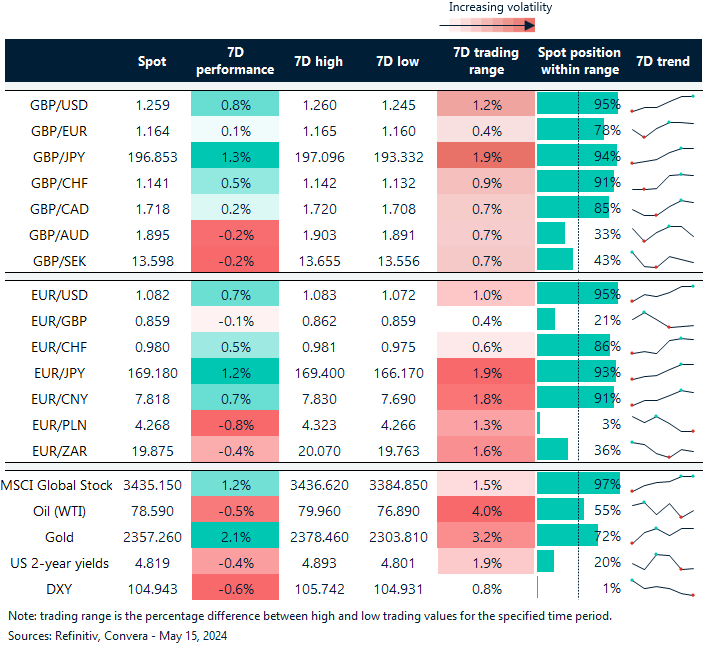 Table: 7-day currency trends and trading ranges