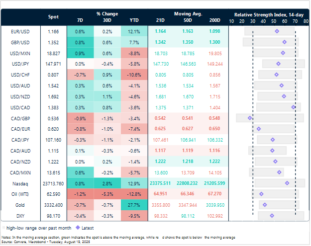 EUR/USD remains in consolidation mode, floating just above the $1.16 handle and trading sideways for ten consecutive sessions. The lack of progress on a potential Russia–Ukraine ceasefire hasn’t shifted the pair’s trajectory, but attention is now turning to the Jackson Hole symposium, which could prove a pivotal catalyst.