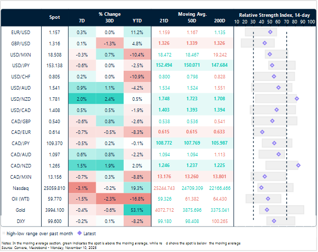 Political uncertainty adds further complexity. Legal challenges to Trump’s tariffs may leave affected businesses in limbo, while the ongoing government shutdown continues to weigh on Q4 growth expectations. However, rumours that the record-breaking US government shutdown is nearing an end is also weighing heavier on the dollar this morning as global risk sentiment improves.