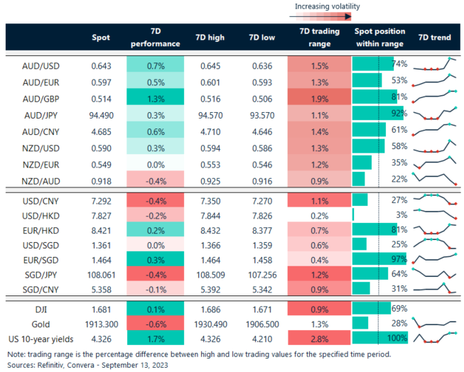 *The FX rates published are provided by Convera’s Market Insights team for research purposes only. The rates have a unique source and may not align to any live exchange rates quoted on other sites. They are not an indication of actual buy/sell rates, or a financial offer.