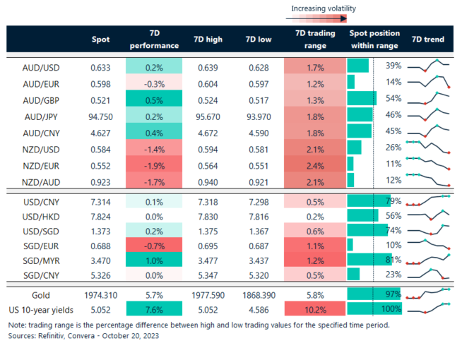 Table: seven-day rolling currency trends and trading ranges