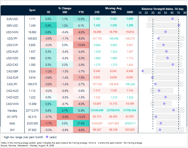 This week, markets will focus on Canadian CPI data, with the monthly reading projected to rise by 0.3% and the annual rate expected to decline slightly to 1.8%. This is one of two inflation reports scheduled before the Bank of Canada’s September monetary policy meeting. Of equal importance will be Federal Reserve Chairman Jerome Powell’s annual address at Jackson Hole, particularly given the market’s high expectation for another Fed rate cut in September.