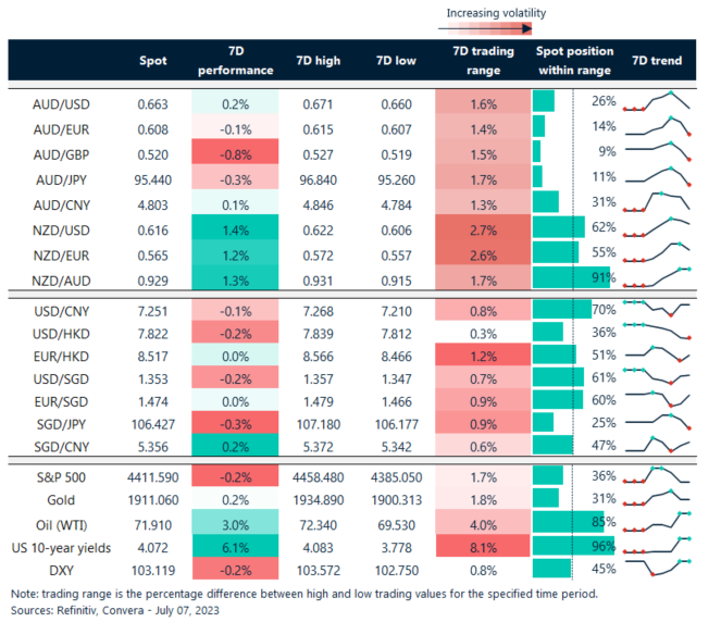 Table: seven-day rolling currency trends and trading ranges