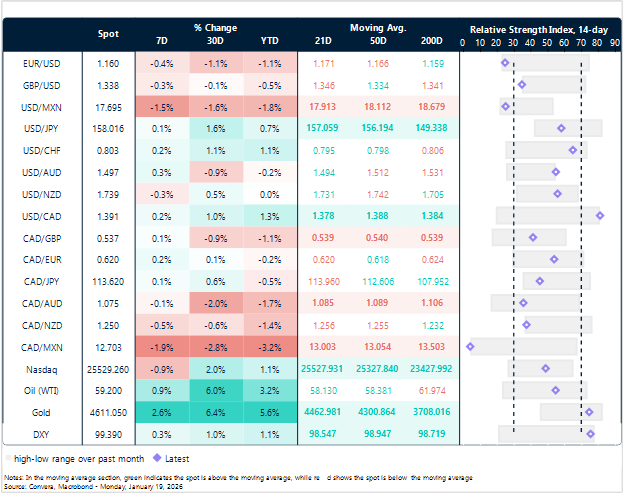 The tariff threat injects another layer of uncertainty into an already crowded geopolitical landscape, raising the risk of a broader risk‑off turn if rhetoric escalates. For markets, the immediate pressure point is Europe: EUR and NOK look most exposed to headline risk, while the Swiss franc looks to be the stand-out winner, acting as a natural hedge against geopolitical stress. European equities — particularly exporters and industrials — face renewed vulnerability. Industrial commodities would likely soften on tariff‑driven demand concerns, while gold and silver stand to benefit if tensions spill over into a wider volatility bid.