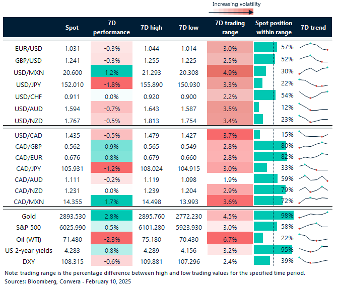 January’s US jobs report delivered a mixed bag for investors. Hiring slowed but wage growth ticked higher and continued the theme of “heightened inflation anxiety” driven by the tariff war and rising inflation expectations. The macro and geopolitical ambiguity was enough to drive the dollar higher before the weekend, but the gains were unable to turn the overall week green.
