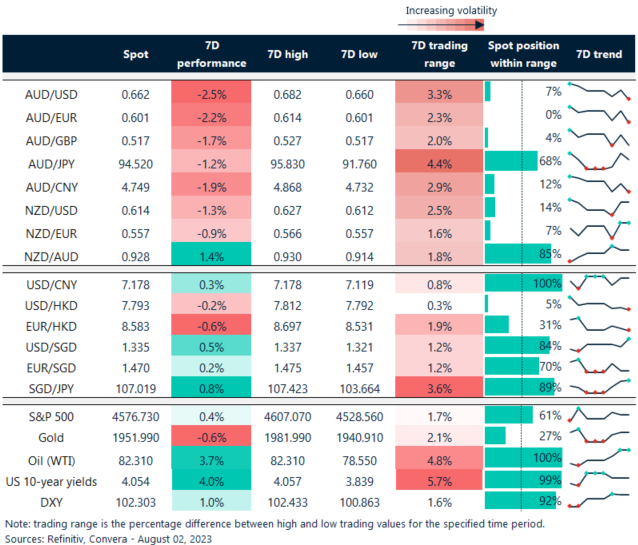 Table: seven-day rolling currency trends and trading ranges