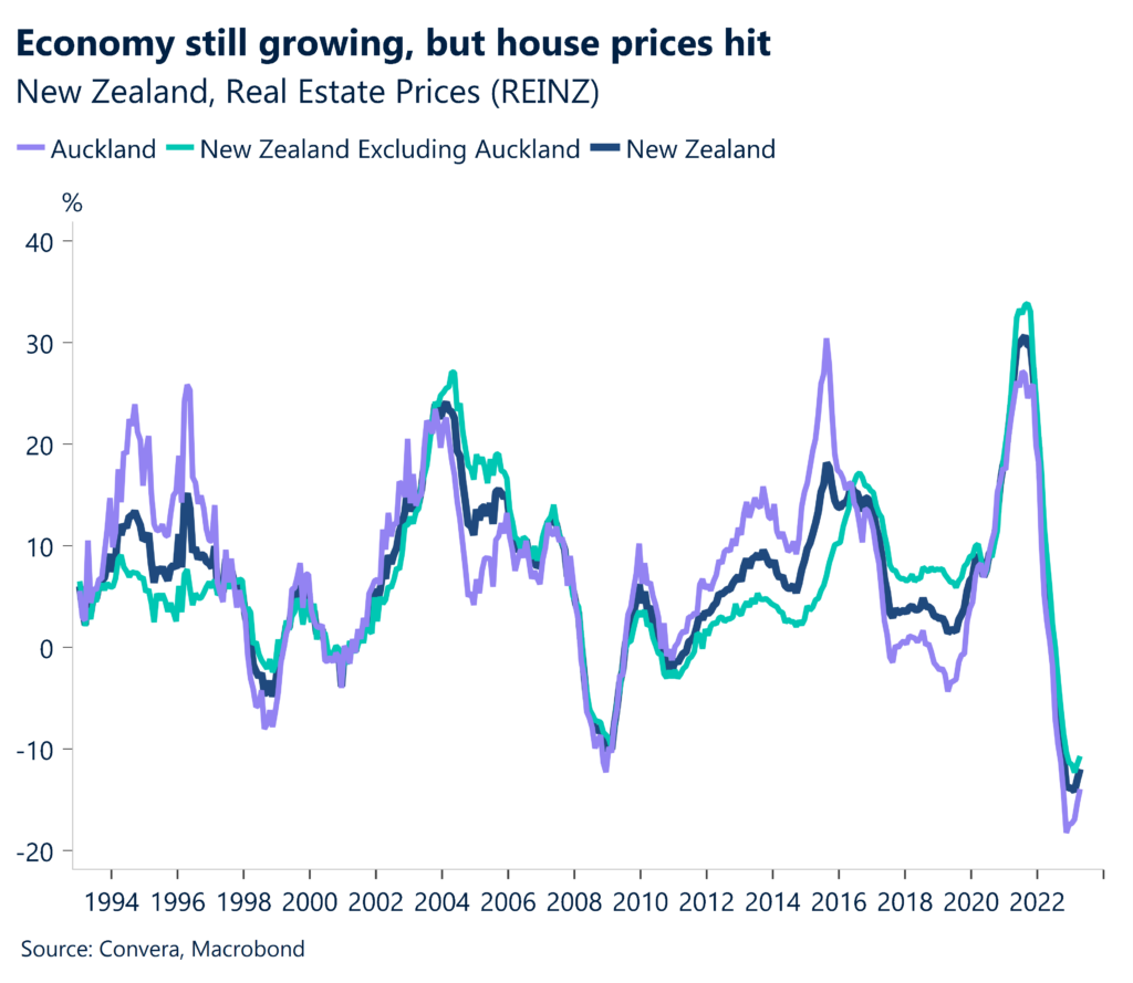 The RBNZ might still be worried about the pace of economic growth and related inflationary pressures, but rates hikes have certainly hit house prices, with prices down more than 10% on an annualised basis.