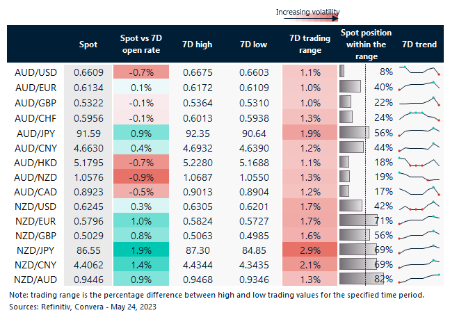 *The FX rates published are provided by Convera’s Market Insights team for research purposes only. The rates have a unique source and may not align to any live exchange rates quoted on other sites. They are not an indication of actual buy/sell rates, or a financial offer.
