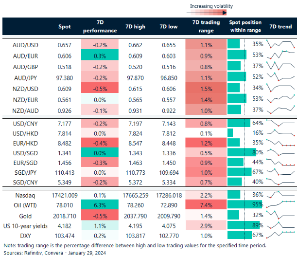 Table: seven-day rolling currency trends and trading ranges