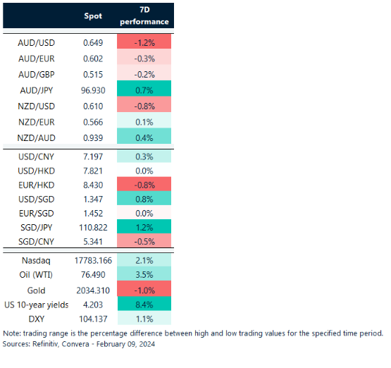 Table: seven-day rolling currency trends and trading ranges (apologies, full table not available today)