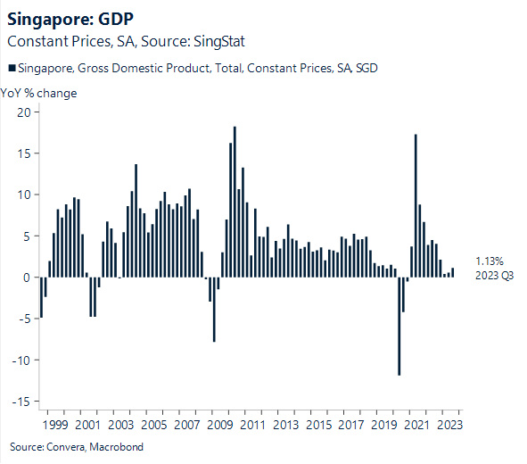 Looking forward, 2024 is probably when SGD NEER (nominal effective exchange rate) will peak. Given that Monetary Authority of Singapore looks likely to have completed its tightening cycle and pricing pressures in the city state are continuing to show signs of moderating, a lower rather than a higher SGD NEER is probably in store for the next big shift.