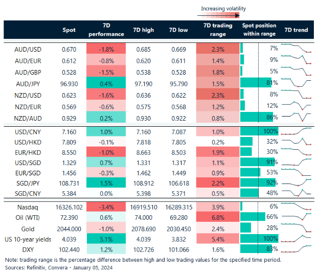 Financial markets continued to start 2024 with a clear reversal in the short-term trend with the US’s key Nasdaq index staging its first five-day loss since December 2022 and the US dollar benefiting from the broader market caution.