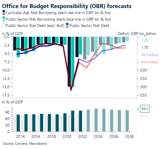The headline budget deficit (PSNB-ex), as of the six months of the fiscal year that have been published, is almost £20 billion less than what the Office for Budget Responsibility (OBR) had predicted at the time of the March Budget.
