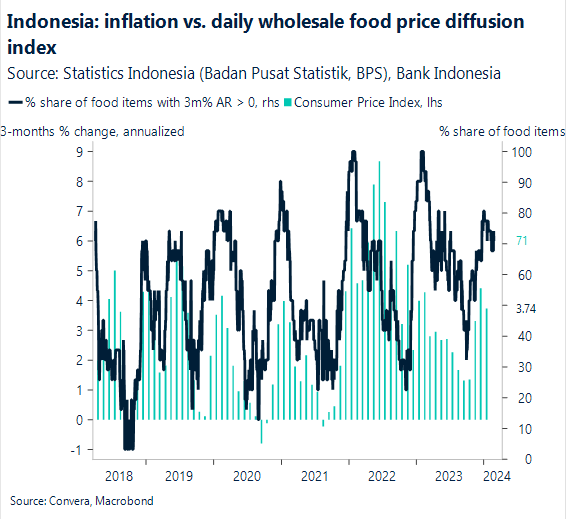 Indonesian inflation is due today. As administered prices stayed steady, we anticipate headline inflation to slightly increase to 2.7% y-o-y in February from 2.6% in January due to persistently high food costs, particularly for rice and red chilis.